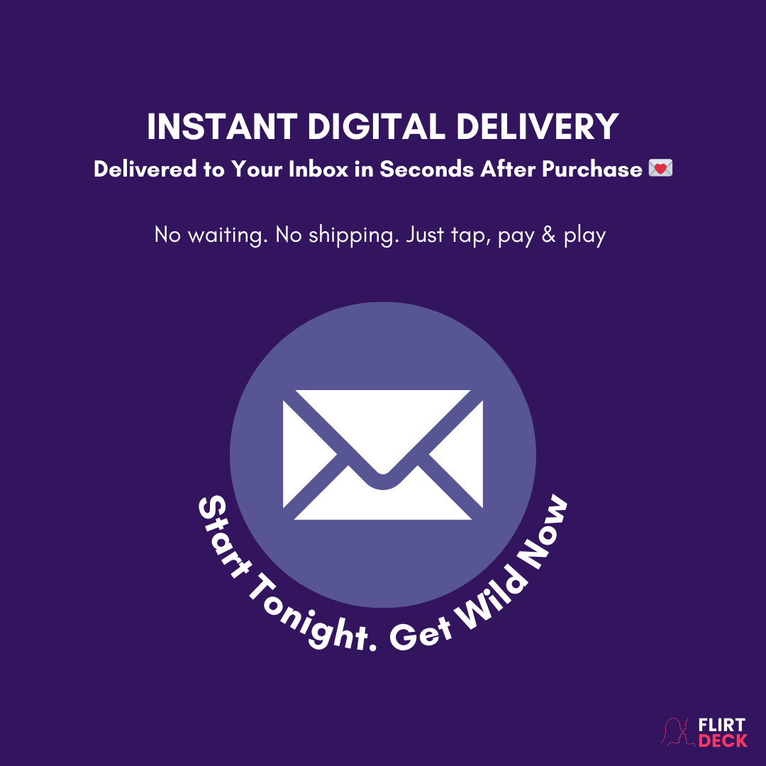FLIRT DECK offers digital products only, which means no physical shipping is required. Whether you're in New York or New Delhi, you can instantly receive our card decks anywhere in the world, right to your inbox. Fast, borderless, and always ready to play.